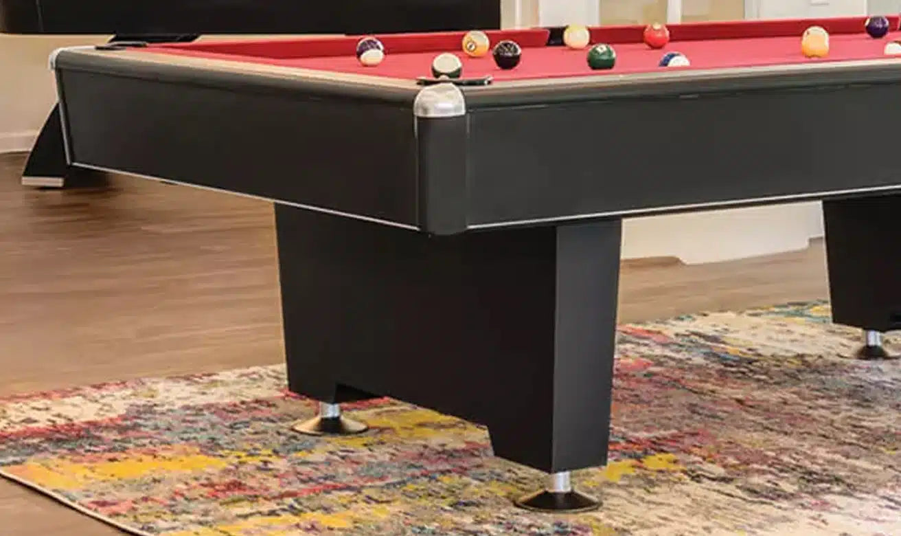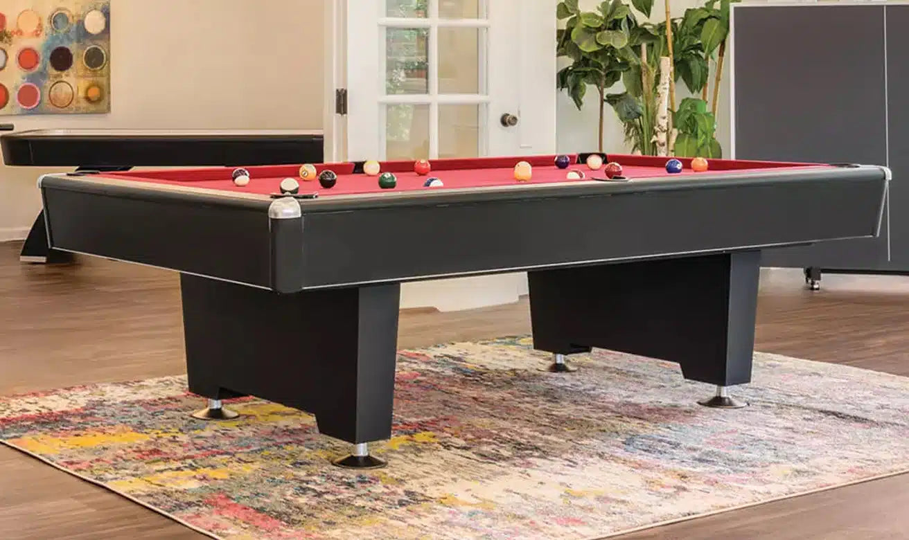 The Black Diamond pool table is an affordable, contemporary billiard table with black laminate and metal corner caps & trim. The laminate is burn and scratch resistant. The kids will love this one.